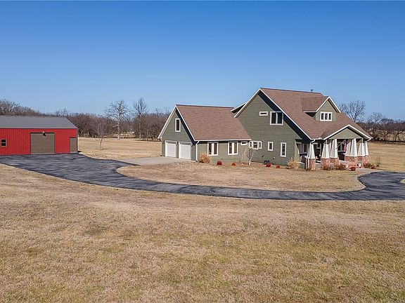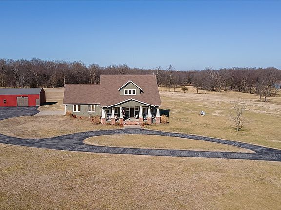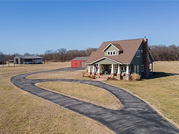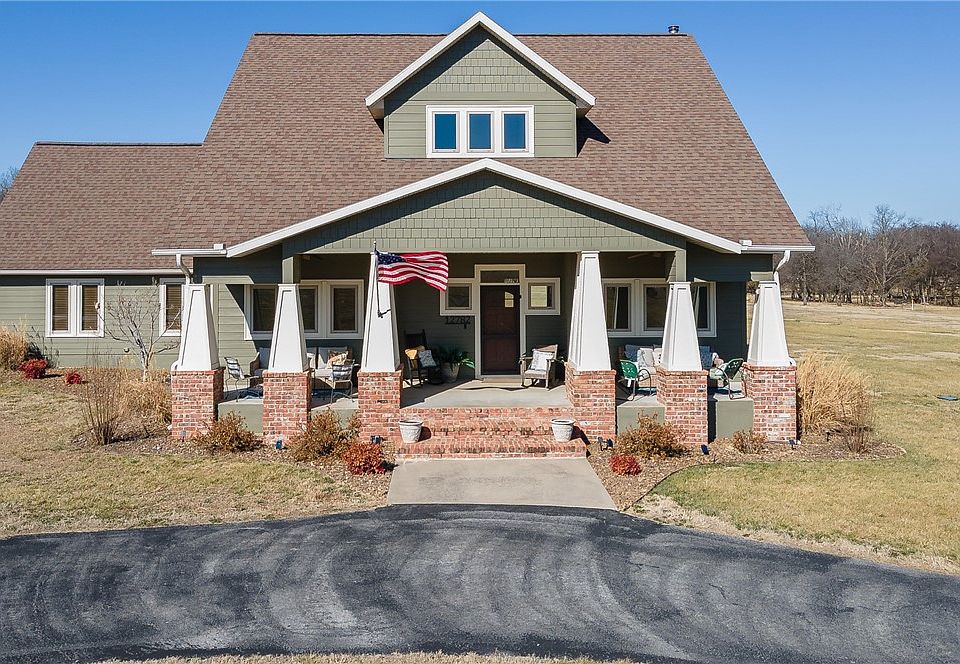 Stunning custom-built Craftsman on 5 acres offering character, comfort & thoughtful updates throughout. The inviting covered porch opens to a light-filled, open floor plan with hardwood floors, a warm wood-burning fireplace & a dedicated office ideal for working from home. The kitchen features granite countertops, stainless steel appliances, butcher block island, farmhouse sink, gas cooktop with pot filler, double ovens & built-in microwave, all flowing seamlessly into the dining area. The primary suite offers vaulted ceilings & a spa-inspired bath with brick flooring, soaking tub, oversized walk-in shower & double vanity. Since 2021, sellers have completed extensive upgrades including full interior repainting (including cabinetry), high-efficiency can lighting, select window replacements, waterproofing improvements with new sump pump & backyard leveling for improved usability. A 1,200+ sq ft shop provides incredible space for hobbies, storage, equipment or workshop needs, all set against peaceful country views.