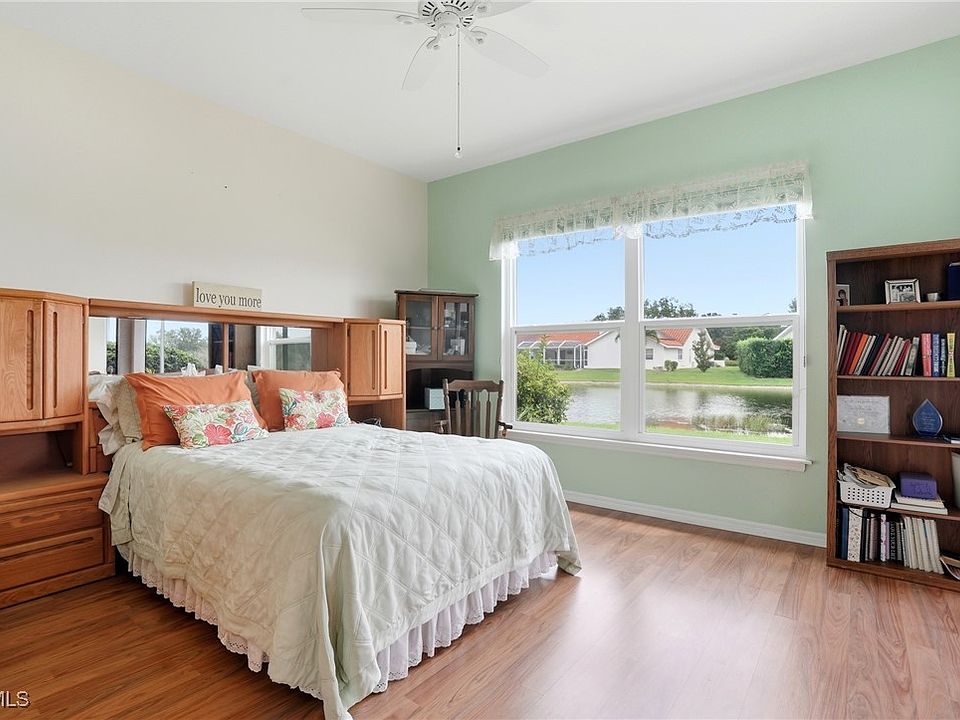 The primary bedroom features an impact-resistant window for peace of mind, and the home also includes a newer washer, tile entry, and solid overall mechanicals. The extended screened lanai, complete with a newer lanai cage, provides a private outdoor retreat overlooking the tranquil lake — ideal for morning coffee, quiet evenings, or entertaining friends.