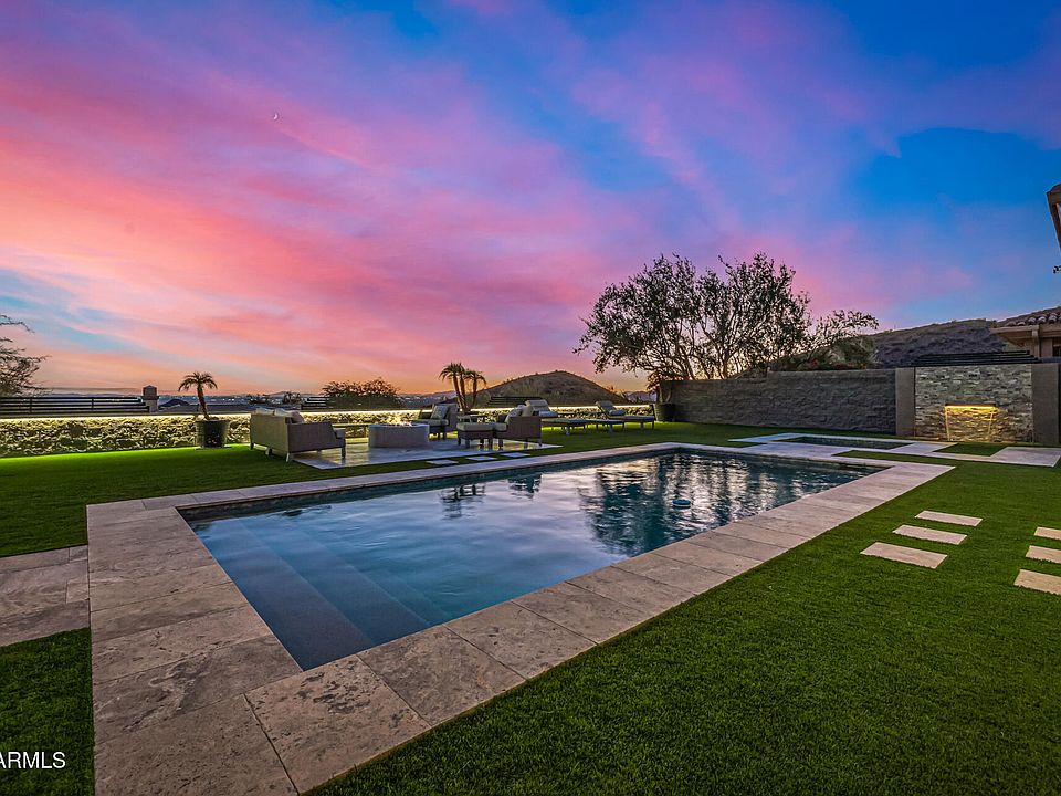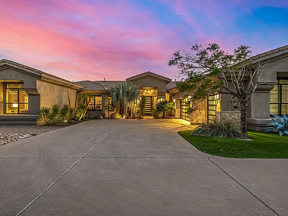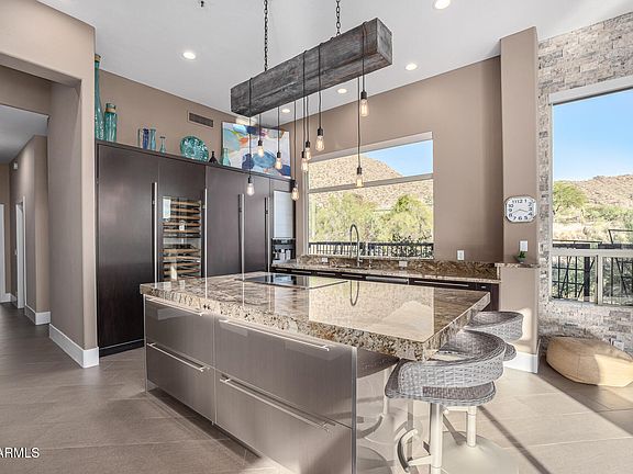 Welcome to an exquisite luxury estate in the esteemed guard-gated community of Scottsdale Mountain. This privately gated property offers a harmonious blend of soft contemporary design, rustic stone accents, and modern lighting, creating an inviting and elegant ambiance. Perched high on an expansive hillside lot, the estate promises breathtaking panoramic views. Inside, every room is a masterpiece of refinement and detail. The gourmet kitchen is every chef's dream with three SubZero units - fridge, freezer, and wine fridge - alongside a built-in Miele coffee center. The spacious island is the ideal gathering spot for family and friends, while the sleek 5-burner induction cooktop adds to the home's contemporary aesthetic. Retreat to your luxurious owner's suite and indulge in breathtaking sunsets or savor your morning coffee with panoramic views from every window. The owner's bath is truly spa-like, boasting modern floating vanities, a massive walk-in shower, and a soaking tub - perfect for unwinding after a long day. Complete with an oversized walk-in closet, the space offers ample storage space that is highlighted by designer lighting. Designed for both relaxation and entertainment, the backyard features a low-maintenance paradise with silver travertine pavers, lush turf, an outdoor kitchen, a ramada, and LED accent lighting. Watch sunsets light up the mountains to the north and take in incredible 180-degree panoramic cityscapes to the south. This expansive lot is also surrounded by Natural Area Open Space (NAOS) to the east, ensuring no neighboring developments disrupt the tranquility. Discover the ultimate luxury living experience at Scottsdale Mountain, where breathtaking views and an active lifestyle converge. This community embodies the quintessential Arizona lifestyle with easy access to a myriad of outdoor activities. Enjoy pickleball, tennis, basketball, and neighborhood events all within the community's gates. Or venture out for a vibrant array of local attractions, including golf, hiking, mountain biking, and horseback riding. With the Lost Dog and Sunrise Trailheads into the McDowell Sonoran Preserve located just outside the community gates, you're just minutes from exceptional scenery and an active lifestyle. Don't miss out on this opportunity to live in one of Scottsdale's most coveted communities, surrounded by natural beauty, while still being close to all that this vibrant city has to offer. Come see why this is more than just a house - it's an experience you won't want to miss!
