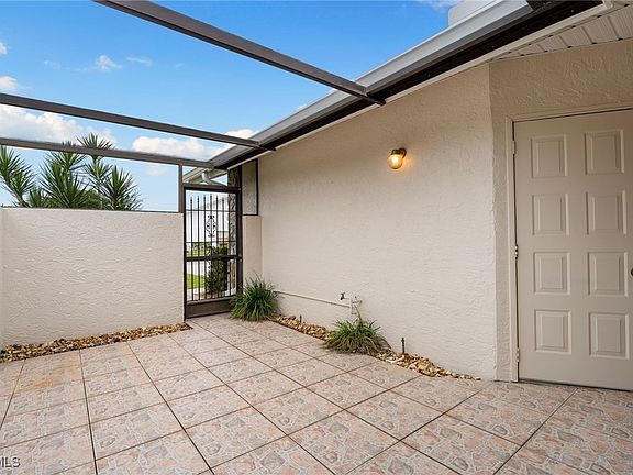 Welcome home to this beautiful 2 bedroom, 2 bath Villa in the highly sought after Cross Creek Golf & Country Club. Centrally located off Daniel’s Parkway between I75 and US41, Cross Creek offers an active lifestyle and an array of amenities including an 18 hole Golf Course, a newly renovated pool and clubhouse, tennis and pickleball, all included at a low HOA fee. Tucked in the heart of the community, away from the hustle and bustle of the main road, Villas II is a subdivision with no age restrictions and has its very own clubhouse and pool.  This end unit, single story villa offers plenty of natural light, soaring ceilings, beautiful lake and golf course views and a functional floorpan. This villa has been immaculately kept and is move in ready for those with a traditional taste, or could be easily renovated for anyone with a more contemporary vision. The functional kitchen has a breakfast nook that opens up to a private courtyard. Overlooking the golf course, the dinning and family rooms are extended to an air-conditioned sunroom that can be enjoyed rain or shine. Wake up each morning in your spacious primary ensuite bedroom with tall ceilings, a bay window and dual closets. Both the primary and guest bedrooms have been renovated with beautiful wood vanities and framed mirrors. Come enjoy the best SWFL has to offer in this maintenance free villa, friendly and active community with low HOA fees.