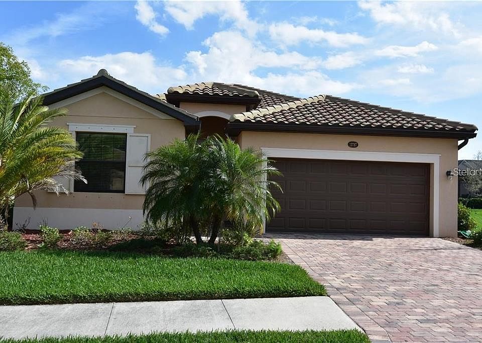 This Trevi model 3 bedrooms plus an office and 3 full bath plus 2 car garage home meets all hard to find criteria. SOLD WITH FURNISHINGS. This home boasts a custom pool and spa ( this is not your builder's grade pool) heated from the bottom of the pool for even heating. Enjoy the view from your south facing EXTRA LARGE lanai into the larger part of the lake with unsurpassed privacy. All around gutters have been recently installed. This resort-style community is also packed with amenities! Including a resort style swimming pool, spa, tennis courts, pickle ball courts, fitness trails, game room with billiards and card tables, a craft room with space designated for a kiln, a vast fitness center that is packed with equipment and flooded with natural light as it overlooks the pool area through a massive wall of windows, clubhouse locker rooms including saunas and steam rooms, poolside cabanas and much more! Gran Paradiso is one Venice's finest master-planned new home community, providing a luxurious, resort-style lifestyle! THE PHOTOS AND 3D MATTERPORT WERE TAKEN BEFORE TENANT MOVED IN BUT THEY BELONG TO THE OWNER. Tenant has added additional items which are not shown