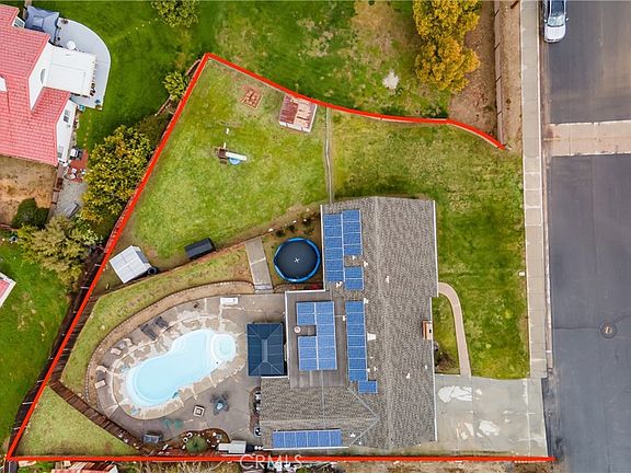 Sprawling single story 4 bedroom 2.5 bath pool and spa home on a fully usable 12,000 square foot lot. 16 seer energy efficient HVAC system and ducting were replaced in 2017 with permit, 200 amp electric panel installed in 2010 with permit, heated in ground pool and spa were installed in 2006 with permit and recently installed a variable speed pool pump and remote control. Large solar system installed in 2015 with virtually no electric bill. Good composition roof and dual pane windows throughout the house. Interior has smooth ceilings throughout, original hardwood floors and neutral paint scheme. There is a large combination living room-dining room with gas/wood burning fireplace and raised hearth plus enormous family room/great room open to the kitchen and breakfast nook with a great view to the backyard and beyond- this room is ready for a wood-burning stove. The primary bedroom features a retreat and en-suite bath with walk-in shower and window. All secondary bedrooms are oversized and have ceiling fans. Quiet location with lovely views all around and room to do everything you want on the large lot.