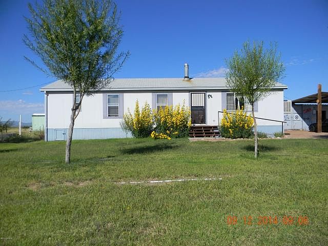 Fantastic home on almost 8 acres with 2 cargo containers that have been made into a shop & storage, plus shed. This 3 bedroom home has a wood fireplace along with central heating & A/c and an evap cooler ready for hook up if wanted. Master bedroom has full bath with stand in shower and garden tub, large closets, carpet and all appliances. 360 degree views, FHA affixed MFH that is a must see, seller motivated.