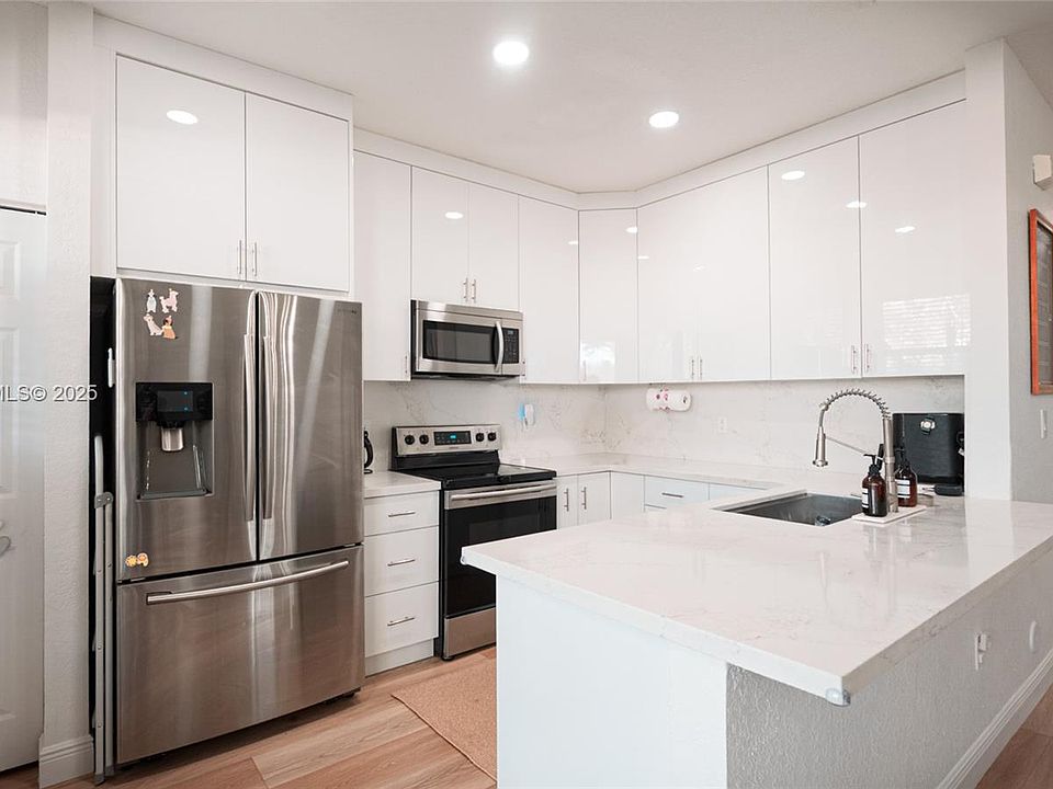 Welcome home to this beautifully upgraded and truly move-in-ready 3-bedroom, 2.5-bathroom townhouse with a one-car garage, located in a well-kept and friendly community. From the moment you walk in, you’ll appreciate the bright, open layout featuring laminated flooring throughout and no carpet, creating a clean, modern feel that’s easy to maintain. The renovated kitchen offers generous storage, abundant natural light, and a timeless design that flows seamlessly into the spacious dining and living areas, perfect for everyday living and entertaining. Upstairs, the primary suite is oversized, featuring a large walk-in closet with custom built-ins and a bright, updated bathroom with modern finishes. Enjoy peace of mind with impact windows, providing safety, energy efficiency, and a quieter interior. A separate second-floor laundry room adds everyday convenience. Step outside to your private, paved patio, a quiet and relaxing space ideal for enjoying your morning coffee or unwinding at the end of the day. This home reflects true pride of ownership, featuring updates that include vinyl flooring, a renovated kitchen and bathrooms, custom closets, and impact-resistant windows. FHA approved, low HOA, and ideally located close to major supermarkets, shopping, and restaurants—a wonderful opportunity to own a well-cared-for home in a desirable location.