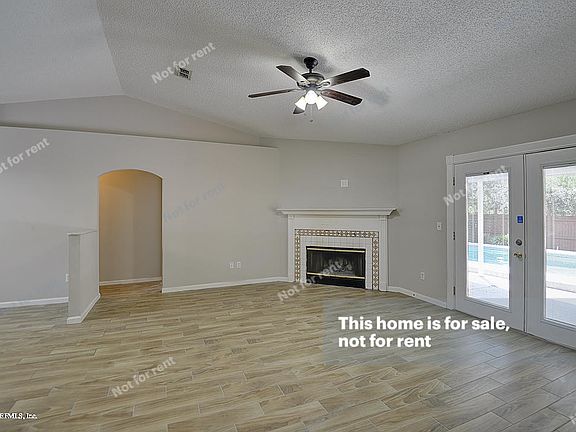 This Jacksonville one-story home offers an in-ground pool, tile flooring, covered front porch, a wood-burning fireplace, a covered patio, and a two-car garage. This home is vacant and cleaned regularly.