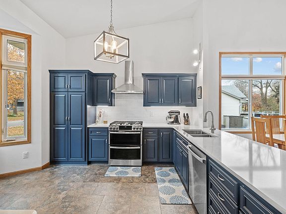 Welcome to the sought-after Teal Lake Estates! This 4-bed, 2-bath, 3-car garage home offers stunning lake views, a peaceful setting, and nearly every update you could ask for. Spend fall nights around the fire pit or take in serene water views from your private dock. The home features a long list of improvements: a new roof (scheduled), a fully remodeled kitchen, an epoxy garage floor, a fenced yard, a new maintenance-free deck, a concrete driveway, a 200-amp electrical upgrade, a new water heater, an irrigation system, and a heated garage. Plus, a 5.5kW solar system (potentially avoiding utility bills) with a 30-year warranty (balance is negotiable and assumable at just 0.9% interest). Located on a quiet street in award-winning school boundaries, this home shows true pride of ownership. The open-concept layout is perfect for entertaining, or simply cozy up by the fireplace while enjoying peaceful views of nature and water.