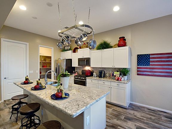 - Ceiling Fan(s), Eat-in Kitchen, Kitchen Island, Live on One Level, Raised Ceilings 9+ft, Smoke Detector(s), Walk-In Closet(s), Wash/Dry Connection, Counters-Granite, Kit/Din Combo, CFL Lights, Counters-Solid Srfc, Garage Door Opener(s)