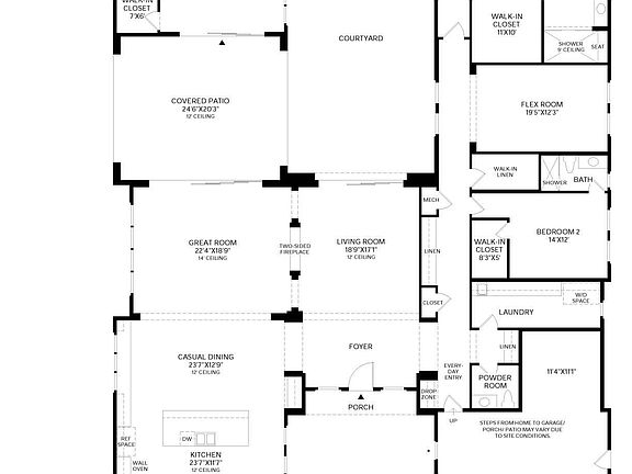 The Tonto home design offers effortless entertaining for family and friends. Welcoming courtyard at the front entryway leads into the main living areas of the great room with double sided 60' fireplace and grand multi-slide stacking door, casual dining, and kitchen have soaring ceilings and open to a generously sized covered patio for indoor/outdoor Arizona living at its finest. Varying ceiling heights up to 14'. The well-appointed kitchen has plenty of counter and cabinet space and a generous walk-in pantry. The primary bedroom suite is inclusive of an expansive primary bath with dual vanities, large soaking tub, and luxe shower with seat. Private casita can be used for a separate guest suite, gym, or secluded home office. Home is offered to-be-built