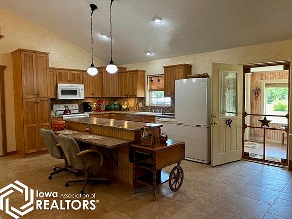 What a beautiful little acreage! Located just of the hard surface road, between Bloomfield and Ottumwa. This home was built in 2005 with a large sunroom, Great Room with Cathedral ceiling, nice dining area. The Kitchen has custom Hickory Cabinets, All Appliances stay with the sale (except Freezer), Large open living room with gas fireplace, The Living room opens on to a beautiful back deck that over looks a quiet and spacious park like setting. Large Bath with new shower and Jetted Tub, and also laundry. The Master bedroom is very spacious and includes his and her office spaces hid away behind doors, and a large walk in closet as well. This home has In Floor heat, as well as 2 mini splits for additional heating and cooling. A large 2 car garage with workshop space and storage. There is also an additional 12x22 storage shed as well. Ample parking for vehicles or RVs This is a must see!
