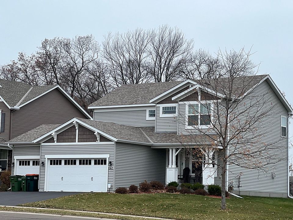Another New Listing from the Karlengroup at Realty Group and Greater Midwest Property Management. 1863 sq. ft. This is a Luxury 2016 Built 4 bedroom, 3 bath two story home located in the highly desirable Legacy Creek neighborhood in Blaine. The Gourmet kitchen features a large center island, stainless steel appliances, and large walk-in pantry. The Kitchen is open to main floor family room. A large mudroom, half bath are off 3 car garage. The main floor family room with fireplace and dining room are directly adjacent to the kitchen. The Home Office or formal sitting room are off the foyer. There are four large bedrooms, and laundry are on the upper level. Three of these bedrooms are serviced by a full bathroom off the hall. The spacious owner's suite has, dual sink vanity, large shower, soaking tub and huge walk-in closet. The lower level is unfinished for recreation and tons of storage space. Enjoy the fenced backyard with stone patio for entertaining spring, summer and fall guests, East facing front porch for watching the sun rise. Close to shopping and Transportation easy commute to either downtown Minneapolis or St. Paul. Will you be the lucky one to live here?