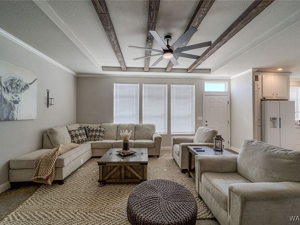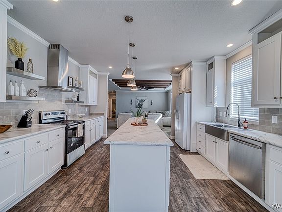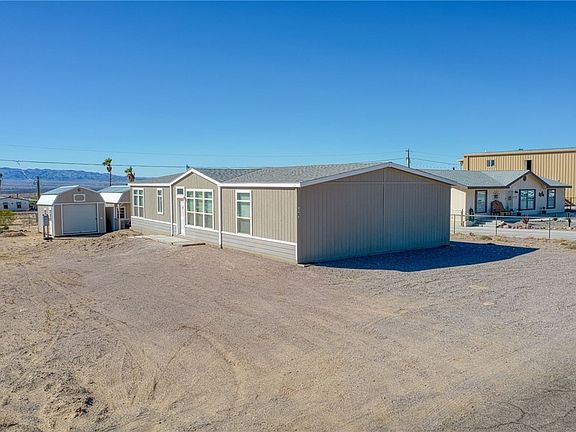PRICE REDUCED!! Beautiful 2022 Champion Farmhouse Home now available! Lots of room here with this 1901 square foot, 3 bedroom, 2 bath newer home! Many great features throughout to include crown molding, wet bar, desk area, ceiling fans, and stylish wood beams in the living room ceiling. The spacious kitchen, where you can entertain all of your family and friends, has a stainless steel farm sink, tile back splash, soft close cabinets, and a good size kitchen island with newer appliances. The outdoor features on this property include RV/Boat parking and 2 Sheds already in place. One has a roll up garage door for easy access, the other one has a nice porch where you can sit back and relax, metal roofs on both. Golden Shores is minutes away from the Great Colorado River and seconds away from the beautiful Mohave desert trails! Enjoy the river lifestyle today!