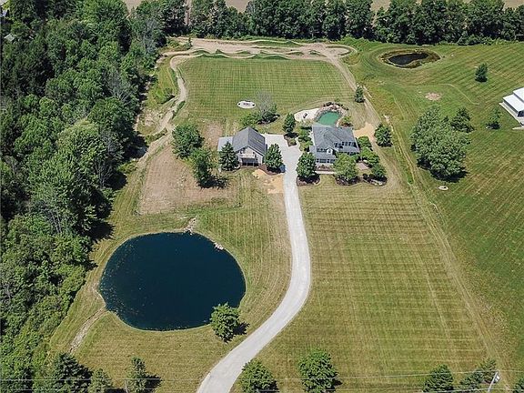 Unique one of a kind Move In ready property. This custom built home has all the amenities you could ask for. This property features 4 Bedrooms, 3.5 Bathrooms, 5146 Total sq ft, kitchen with all appliances and unique silo stone island and open to living room that has a high efficiency wood burner on a tile hearth, first floor office with french doors, first floor laundry room, master bedroom with master bath that has walk-in tiled dual shower. Finished 13 course walk-out basement with recreational area including half kitchen. 30 x 40 garage has a full bath including walk-in waterfall shower and upstairs in-law/living suite complete with full kitchen, as well attached is a 12 x 16 stall with an 18 x 16 tack area that leads out to a large fenced in pasture. Picturesque property includes custom landscaping and lighting, a stocked pond, 4 lane dirt bike track, custom fire pit, basketball court, Azer covered patio with stone columns that leads to an incredible stone lined saltwater swimming pond with sand bottom and runs on a computerized filtration system complete with waterfall, and oversized beach area. ADT security system, upgraded water softener, oversized hot water tank and newer pressure tank, All appliances stay. A must see as there is so much to offer in this one owner home, truly a unique find. Berkshire School District.