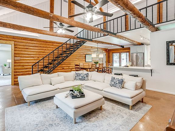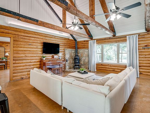 Step into a home that feels like a world away. This beautifully updated 3-bedroom, 2.5-bath log cabin blends rustic charm with elegant modern style. The spacious living area welcomes you with soaring cathedral ceilings accented by wood beams, concrete floors, and a cozy wood-burning stove. The stunning updated kitchen features marble countertops, timeless finishes, ample cabinets and great prep space. The large primary suite downstairs offers a private retreat, while two guest bedrooms are split upstairs. An expansive second living area would make a great game room. Enjoy the outdoors from incredible front and back porches that invite you to relax and take in the peaceful surroundings. Nestled on 2 gorgeous acres, this property offers complete privacy with mature trees, beautiful landscaping, and a true connection to nature. Sitting on a cul-de-sac road and large ranches are adjacent to the property. Storage building-workshop with electricity and water. Meticulously maintained inside and out, this property is more than a home, it’s a retreat you’ll never want to leave. Incredible location just 6 miles from downtown Weatherford, 33 miles from Fort Worth, 55 miles from DFW Airport. No HOA. Water Well.
