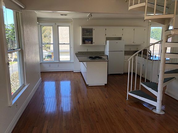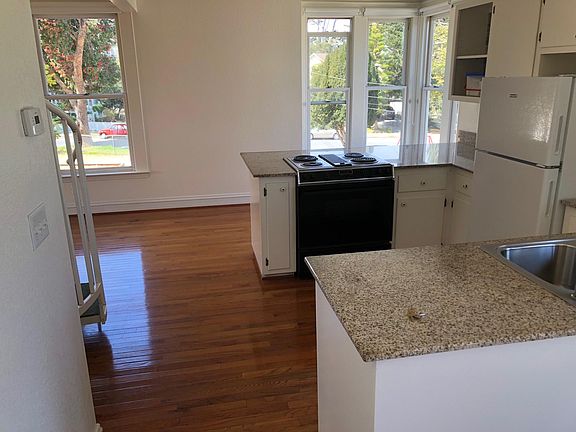 Remodeled 1 bed with expansive loft (300 square feet, serves as a 2nd bedroom), 1 bathroom apartment in Victorian next to Caledonia Park, approximately 1000 Square Feet (total square footage including finished loft). Solid Hardwood floors on lower level, carpet on upper level loft, lots of large windows making the unit very bright. Views of the ocean. Lots of built-in storage, closets and large kitchen with granite countertops, countertops on one end accommodate 3 bar stools.