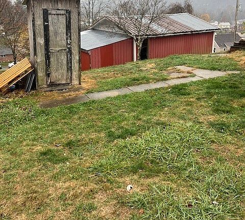 4 Bdrm, 2 full bath house with lg applianced eat in kitchen, island, lg pantry and built in glass front cupboard, Hardwood floors.D en off of living room with pocket doors. Beautiful stairway that leads to bedrooms. 1st floor laundry, additional 2 lots. Detached garage. Needs some TLC. A home warranty included .