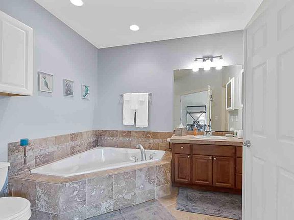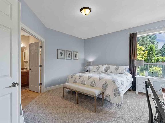 The house features an open floor plan, a well-equipped kitchen, and a dining room in the sight line. The lower master tucked behind French doors has jetted tub, separate shower, walk-in closet, and private patio all to itself! The upper master bedroom has its own full bath and walk-in closet. All the rooms are spacious.