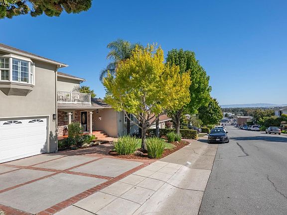 Set high above the Bay with spectacular views, this beautiful 4-bed, 2-bath home blends style with seamless indoor-outdoor living. Designed for both comfort and flexibility, the home features two view balconies and a 560sqft deck perfect for entertaining, relaxing, and watching sunsets. Inside, the open-concept living area showcases refinished red oak hardwood floors, a gas fireplace, stylish kitchen with black marble tile floors, marble countertops, and a glass tile backsplash. A versatile lower-level room with its own private exterior entrance offers endless possibilities: home office, studio, or creative pursuits. The bedroom layout offers two bedrooms and a full bath on the main level, with two additional bedrooms and a full bath upstairs, providing great separation of space. Out back, a serene garden oasis awaits. Raised vegetable beds, a private seating nook, and a lush lawn create the perfect setting for slow mornings, golden afternoons, and garden-to-table living. An attached 2-car garage, additional driveway parking, and easy access to Caltrain, commute routes, and SFO (just 15 minutes away) make daily life effortless. Discover a home where comfort, style, and views come together and all just minutes from shopping, dining, work, play and local conveniences. Keys please!