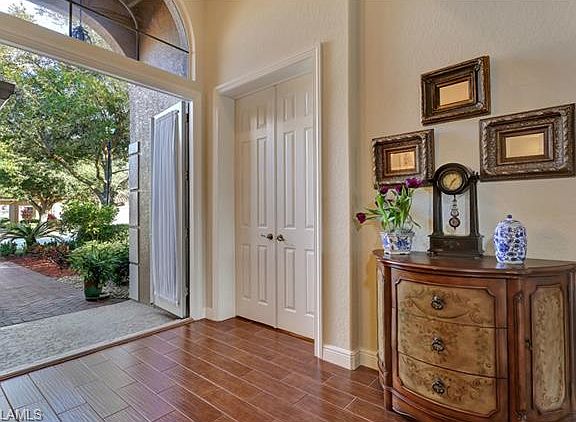 NEW PRICE IMPROVEMENT. Welcome to the VINEYARDS - This open Astoria floor plan is situated behind the guarded gate in the FOUNTAINHEAD community. Overlooking a peaceful and serene lake this easy to maintain home was lightly lived in as a second home and recently painted, updates in the kitchen & appliances, master bathroom, new wood tile throughout the main living areas, carpet and new AC installed in '14. The furnishings are offered in a package with exclusions. You will have access to the community pool at the entrance to Fountainhead. For those with the active and social lifestyle in mind the membership optional Vineyards Club offers FOUR LEVELS of membership to be apart of the GOLF, TENNIS, FITNESS, DINNING, SPA and CLUBHOUSE! Many miles of well manicured walking and bike paths through the Vineyards provides the ultimate setting for luxury Naples lifestyle. Agents SEE Remarks!