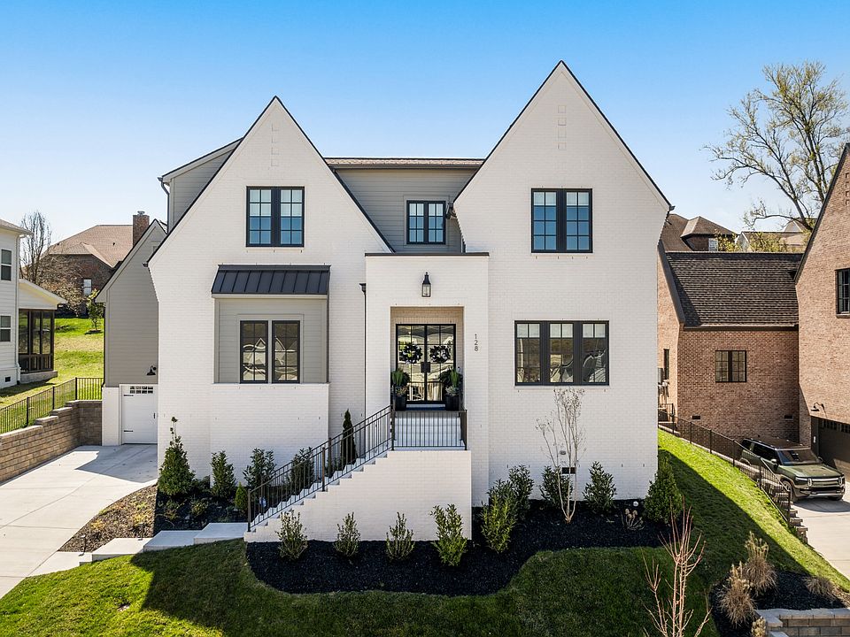 Rare CUSTOM NEW BUILD in one of Franklin’s most desirable communities, this one-of-a-kind 2024 residence was designed by prestigious architect Andrew King, known for his work in Troubadour, The Grove, and Oman. Every aspect of this home has been carefully CURATED AND UPGRADED, down to the hardware, creating a living experience that is as refined as it is functional. The painted brick exterior is accented by striking iron and glass double front doors, a THREE CAR GARAGE, and a spacious covered back porch with an outdoor fireplace, offering the perfect blend of elegance and comfort. Inside, an open floor plan showcases soaring 11-foot ceilings on the main level and 10-foot ceilings upstairs, hardwood flooring throughout, and intricate custom trim work. The gourmet kitchen is a showpiece with quartz countertops, a solid slab backsplash, a ten-foot island, an expansive pantry, and a premium THERMADOR appliance package. The vaulted primary suite on the main floor provides a serene retreat with a spa-like bath and an oversized custom closet, while four additional bedrooms upstairs each feature ensuite baths adorned with handmade ZELLIGE TILE that brings artisanal texture and timeless beauty to the spaces. The second floor also includes a spacious recreation room with four custom built-in BUNK BEDS and a full laundry room, in addition to the main level laundry, ensuring effortless convenience. Designer wallpaper, curated paint selections, DESIGNER LIGHTING, and elevated finishes carry throughout the home, reinforcing the level of detail and artistry in every room. With two fireplaces, dual laundry, and every possible luxury upgrade, this home truly has it all. The community itself enhances the lifestyle with two pools, playgrounds, basketball courts, hiking trails, and more, making this property a rare opportunity in Franklin.