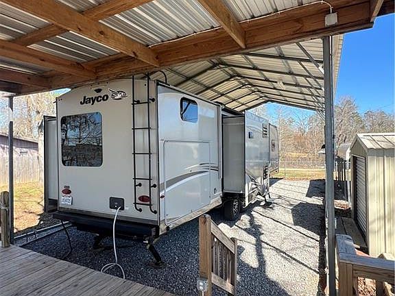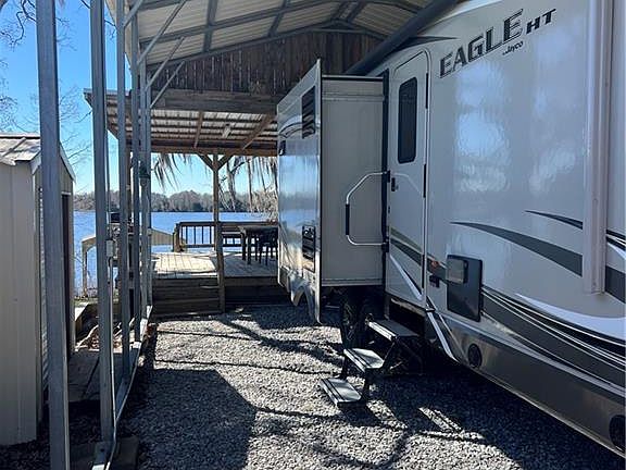 There is a 2017 Jayco Eagle BHTS the seller will sell for $20,000.00 it is 38 ft long.This RV has a Primary bedroom at one end, and a bunk house at the other end and will sleep 10. This RV is like New. Stepping out of the RV there is an 18 x 20 deck overlooking the lake. Walking down to the water you have a Covered boat house for two boats, and one has a lift for a flat bottom boat. There is also large dock to fish off of. The 8 x 10 storage has a washer & Dryer with room for a freezer or full-size refrigerator.