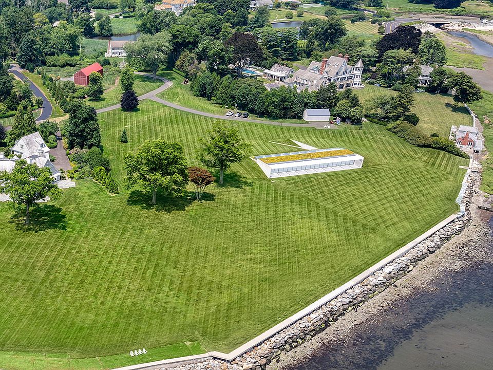 6.62 acres of Long Island Sound waterfront property. A stunning modern architectural masterpiece. The structure is anchored by a 75 ft indoor pool and wall of seamless glass windows that feel connected to the water beyond , the single story structure also holds a kitchen, lounge and bath. The Red Barn is a secondary structure in the orchard section of the property - designed as an artist's studio on the main floor, there is also a bedroom, bathroom and living area on the second floor.