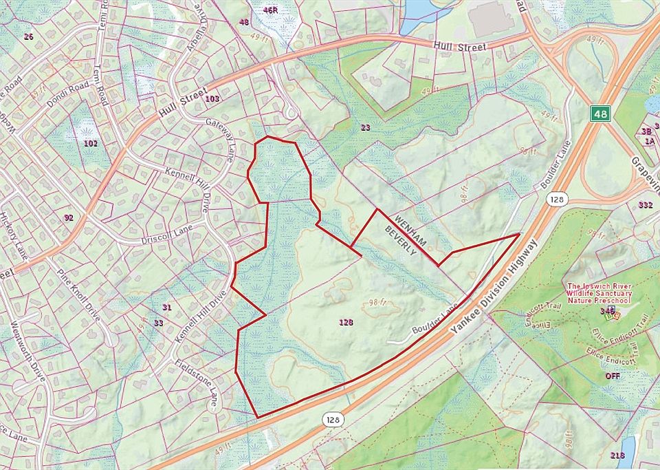 Prime Development Opportunity in Beverly, MA—recently named the hottest housing market in the U.S. by Realtor.com. This potentially developable 39+ acre site offers a rare chance to create a large-scale residential or mixed-use community in a sought-after North Shore location. The centerpiece is 128 Boulder Lane (26 acres), zoned Restricted Industrial (IR), while surrounding parcels are R15 (single-family residential). While zoning favors single-family homes, select multi-family projects—such as Subsidized Elderly Housing—or commercial uses may be permitted by Special Permit. Excellent location near major routes, Gordon College, and Beverly Farms. With strong demand for housing and specialized communities, this property offers developers an exceptional canvas. Buyer and buyer's agent to do their own diligence.