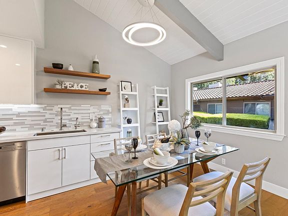Beautifully remodeled single-story end-unit townhouse in Sunnyvales desirable Sunnytrees community. This modern home offers privacy, comfort, and luxury upgrades throughout. Fully renovated in 2018, it features engineered wood flooring, a stylish kitchen with quartz countertops, Miele appliances, and a Zephyr range hood. The bathrooms include high-end fixtures and Robern medicine cabinets with touch controls. Recent upgrades include new electrical wiring, furnace, AC, water heater, and a MERV 16 air filtration system with HRV for fresh air year-round. Enjoy two private yards, an attached garage pre-wired for dual EV chargers, and community amenities including a pool and clubhouse. Ideally located minutes from Caltrain, major tech campuses, top schools, parks, dining, and shopping, this home offers exceptional Silicon Valley living at 128 Brahms Way.