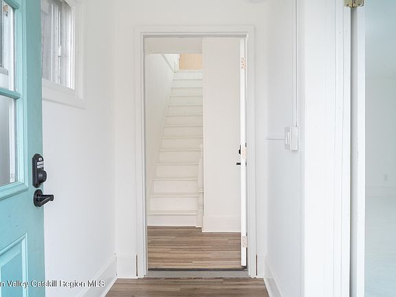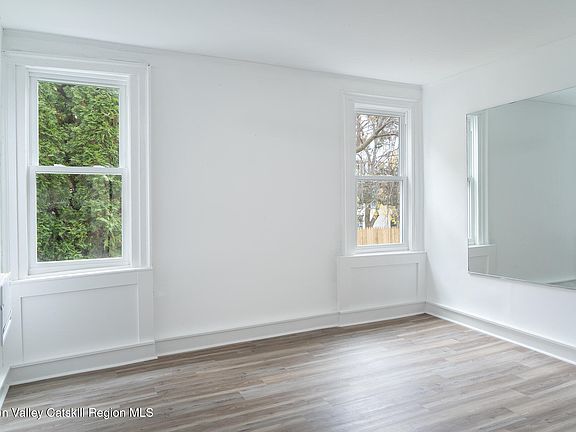 First floor unit includes 2 bedrooms and 1 bathroom. An enclosed porch offers seasonal views of the Catskill Mountains. The second floor unit includes 1 bedroom, a full bathroom with a claw foot tub, a small kitchen, and a Juliet balcony off the master bedroom that overlooks the yard.