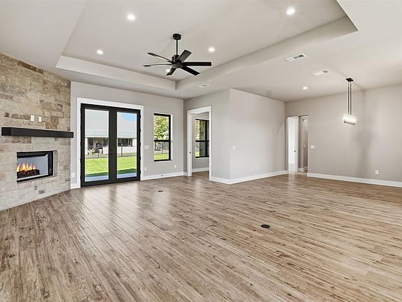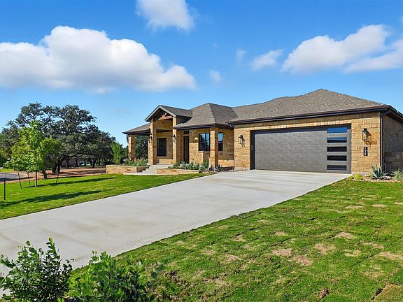 Welcome to 128 Broadgreen Trail, a stunning new home in the sought-after golf community of The Enclave, Kingsland, Texas. Craftedwith meticulous detail and full masonry construction, this home blends Hill Country charm with modern design. The exterior showcasesrich stonework, tongue-and-groove soffits, and an inviting front porch framed by a knotty alder entry door. Step inside to discover soaringceilings, 8’ solid core doors, and tile floors throughout. The gourmet kitchen features quartz countertops, custom cabinetry, KitchenAidSS appliances, black fixtures, LED under-cabinet lighting, and a sleek black backsplash complemented by plug-mold outlets for a cleanlook. A cozy Majestic Sovereign 42” wood-burning fireplace anchors the spacious living area, while the private primary suite boasts awalk-in tile shower, granite countertops, and custom toe-kick lighting. Built with efficiency in mind, the home offers full spray-foaminsulation, (2) Goodman HVAC systems, a 50-gallon water heater, and an On-Q CAT6 smart panel for seamless connectivity. Thecovered back patio invites outdoor relaxation, overlooking fresh landscaping with irrigation, and the large 2-car garage includes sprayfoam insulation and a full gutter system. With 2x6 framing, architectural shingles, and timeless craftsmanship throughout, this homedelivers durability and comfort designed to last. Enjoy life in The Enclave, a gated golf-course community near Lake LBJ, minutes fromMarble Falls and all the best of the Highland Lakes area.