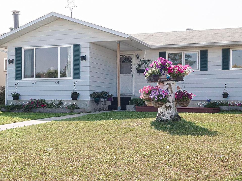 Step into this 1,216 sq ft bungalow offering 5 bedrooms, modern upgrades, and income potential. The main floor welcomes you with updated laminate flooring (2019), a bright living area, and functional kitchen space. Downstairs, large legal egress windows, separate entrance, and a history of second kitchen development make the basement perfect for extended family or future suite options. Peace of mind comes with newer mechanicals—furnace (2022), hot water tank (2022), plus refreshed windows, doors, and eaves over the years. Outside, enjoy the double detached garage, fenced yard, and a backdrop of green space that separates you from Hwy 2A—providing openness with some traffic hum. Close to schools, parks, shopping, and easy commuter routes, this property blends comfort, practicality, and opportunity in one affordable package.