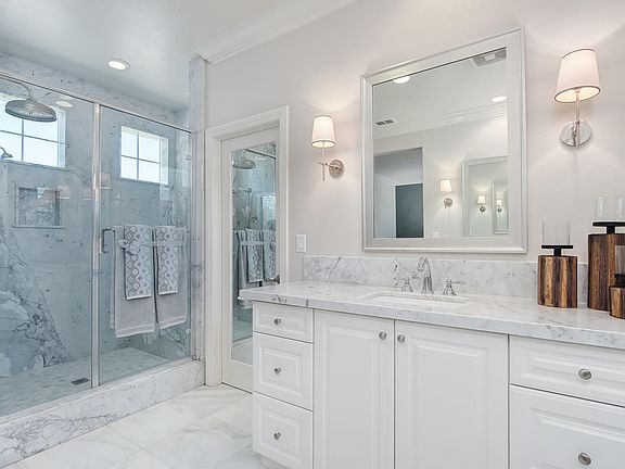 HIGHLY UPGRADED MODERN HOME w/OVER $350K IN UPGRADES*MOST POPULAR & LARGEST PLAN 3 "ROSEMIST" TRACT IN AWARD-WINNING PAVILION PARK*Very generous & rare 6,611SF Lot Size w/beautiful landscaping*This 3404sf home features 5 Bed+5.5 Bath+3 Car Garage has an abundance of natural light*Upgrades include: Crown Molding throughout, Custom wainscoting in foyer, Restoration Hardware light fixtures throughout, High-end Provenza European oak wood flooring, Chef's kitchen w/Carrera Marble full slab counter & backsplash, Caesarstone Quartz countertop on a huge island, GE Monogram built-in refrigerator & SS appliances, Custom wood casings on all windows, Custom roller shades/drapery, Tesla electric car charger in garage, Solar-powered home*Large & open great room has an accordion bi-fold glass door which opens up into the relaxing California room featuring a cozy outdoor fireplace*Upstairs loft features custom built-in office and shelving*Two Master Bedrooms: one upstairs & one downstairs*Beautiful master bathroom w/Carrera marble full slab vanities & shower walls, Rain head shower system*Every bedroom has its own full bathroom*Beautifully landscaped front & backyard w/custom waterfal & patio are perfect for outdoor entertaining*PLEASE CHECK OUT THE 3D TOUR LINK BELOW*