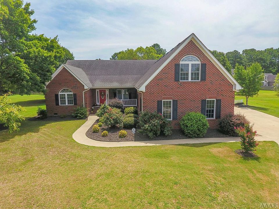 Welcome home to this lovely bricked 4 bedroom 3 full bath residence in Windfield Subdivision, Elizabeth City. The home features an open concept living with a kitchen to be in the heart of all the activities for entertaining plus 4th bedroom/office frog. This home offers relaxation from its back porch and lawn areas. There is plenty of room to spread out or cozy up! Cozy up by the fireplace that is fueled by natural gas. The double garage space for vehicles and outdoor activities plenty of storage space. Enjoy local activities restaurants pubs and local markets easily accessible. Come see!, Air to Air Heating