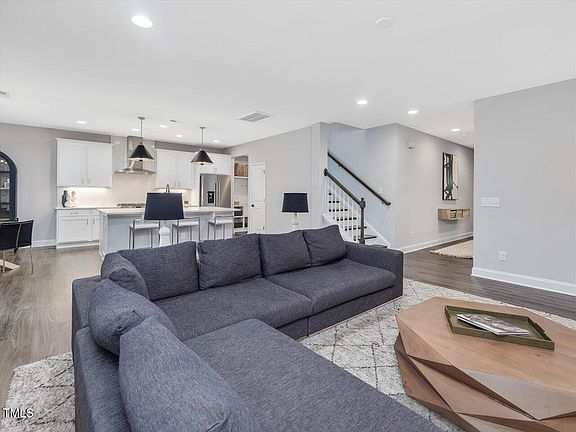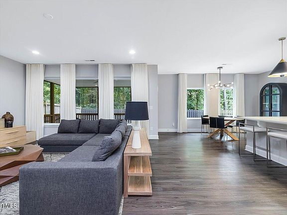 This well appointed four-bedroom, two-and-a-half-bathroom home in Chapel Run encompasses over 2,400 square feet of refined living space. The property features designer elements throughout, including lighting by Kelly Wearstler, custom Ripple Fold draperies, and stunning Calcutta Gold countertops and backsplash. The main floor boasts a spacious office, an open living room, and a large kitchen equipped with professional-grade Frigidaire appliances and apron-front stainless steel farm sink. Upstairs includes a versatile loft/den area, a primary suite with a tray ceiling and custom closet, a spa-like en-suite bathroom, along with three additional bedrooms and a beautifully designed secondary bathroom. The property is situated on a corner lot with a fully fenced yard and screened porch that adjoins HOA green space. Conveniently located just moments from NC 54, Highway 40, Southpoint, UNC, and Duke, this home offers both luxury and accessibility. Don't wait to come see why 128 is so great!