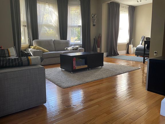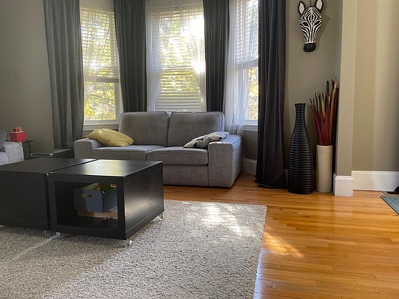Bright and sunny top floor two bedroom unit in a wonderful Brookline location. This impeccably open floor home comes complete with eat-in kitchen and spacious bath, hardwood floors, off-street parking, private laundry, extra storage, central AC, heat pump, EV charging option, and more. Amazing sunlight throughout the day with southern exposure and plenty of windows. Close to public transportation, Logwood Medical, public parks, and the Emerald Necklace, this well-laid-out treetop home really does have it all. No broker fees. Renter is responsible for gas and electric. Small dogs/cats are OK.