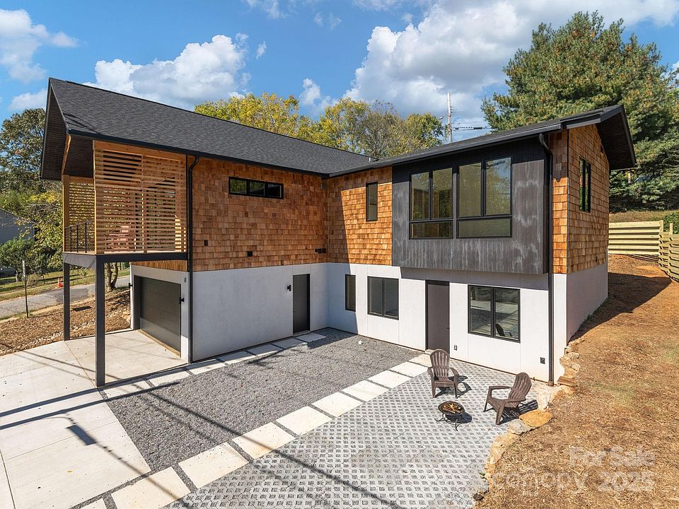 Modern mountain living meets sustainable design in this stunning new construction by an award-winning local builder known for craftsmanship and eco-conscious homes. The light-filled great room features vaulted ceilings, a striking tile backsplash, and an open flow ideal for entertaining. The main-level primary suite offers two custom closets and a spa-inspired bath. A dedicated laundry room with exterior entry and built-in dog wash adds everyday convenience. Enjoy the covered balcony overlooking future greenway space connecting Downtown Asheville to the River Arts District. The rare attached two-car garage provides easy access to the lower-level workshop and finished basement. A spacious third bedroom with ensuite bath, wet bar, and mini fridge creates the perfect guest suite or potential rental with private entry. Modern design, thoughtful details, and an unbeatable location walkable to the bustling South Slope: this is downtown Asheville living at its best!