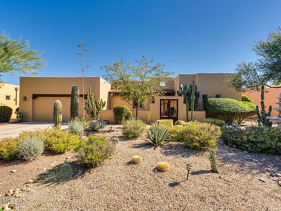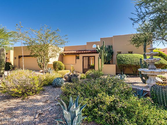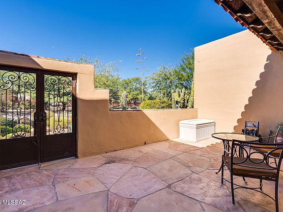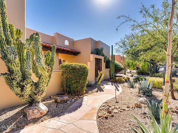 Stunning Hacienda Model with casita on a premium .40-acre lot backing to the De Anza Trail and Santa Cruz River with views of lush cottonwoods. The 2,146 SF main home plus 329 SF detached casita offer space and flexibility. Custom tile work, artisan sinks, a flagstone courtyard with fountain, and three fireplaces (one inside and two out) create timeless charm. Expanded patios and a sky deck invite outdoor living and star gazing. The backyard is an entertainer's dream with a full outdoor kitchen, natural gas BBQ, and solar-heated pebble tech pool.