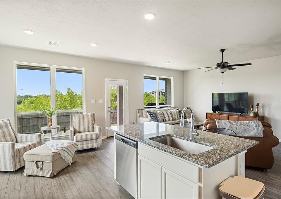 This beautiful one-story home is situated on a premium lot overlooking the pond offers a perfect blend of comfort, style, and convenience. Located directly across from the high school, you'll love the easy access to all sporting events from Friday night football games to Spring baseball. Inside, the home features an open floorplan ideal for both everyday living and entertaining. Enjoy the warmth and durability of vinyl wood plank flooring throughout the main areas, along with granite countertops in the kitchen that add a touch of elegance. The spacious layout includes a large living area, well-appointed kitchen, oversized Island and generously sized bedrooms. Don't miss this rare opportunity to own a home on one of the neighborhood's best lots - with scenic water views right out your back door!
