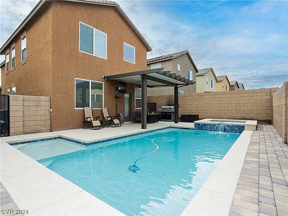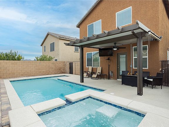 Welcome home to Weston Hills in Henderson! This open floorplan features 3 bedrooms, 3 bathrooms w/loft. Heated Pool and Spa with removable safety fence, perfect for gatherings with family and friends! Step inside and be greeted by the warm and inviting ambiance, featuring tile throughout the first floor with granite tops, stainless appliances & breakfast bar. Covered back patio w/pavers and TV, perfect for entertaining and relaxing. Head upstairs and discover the generously-sized primary bedroom. The primary bathroom features a separate shower and bath tub. Additional features include a welcoming front porch, low taxes, and low HOA. Don't miss out on this one-of-a-kind home that combines comfort, privacy, a heated pool/spa, and modern amenities!