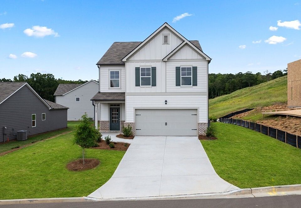 Welcome to Sheffield Highlands. D.R. Hortons newest resort style living community. Our Harbor plan is afforadable, with space to expand the family Located in highly desirable North Paulding High School District. The kitchen features 36' cabinets with granite and tile backsplash. Patio offers a grill stub! The Primary bedroom offers both a soaking tub and shower with a seperate water closet and dual vanity. Smart Home Features 7" video panel, Skybell Smart Remote door lock/lihgt switch. Our amenity area included: 6 Lane Jr. Olympic Pool, kid pool with splash water feature. Clubhouse, Tennis Court and 6 pickle ball courts. Tot Lot and 1/2 acre Playfield