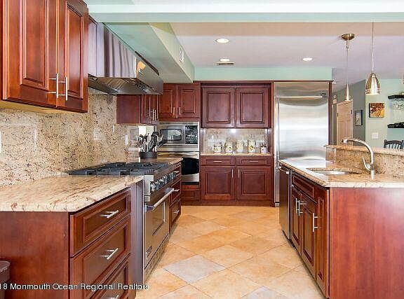 Matchless Colonial in Beautiful Condition features Brazilian Cherry Hardwood Floors, Granite Countertops in Kitchen and Bathrooms, Viking Range with Grill and Vent Hood, Wall Oven and Microwave, Refrigerator with Ice Maker, Bosch Dishwasher, Walk-in Butler's Pantry. Enjoy the Trex Deck with Retractable Awning. Entertain in this True ''L'' Shaped Heated Salt Water In Ground Pool with Spa this summer with Outdoor Kitchen featuring 5 stools, a Lynx Grill and refrigerator. Fenced in Yard has Storage Shed and backs up to a Conservation Area with no one behind you. Located only 2 miles from Point Pleasant Train Station, this home is conveniently located for commuters, as well as close to shopping and schools. You will Love what Great Shape this home is in and will Want to Make it Your Next Home!