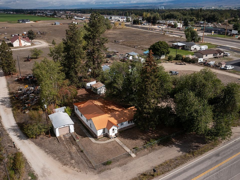 Experience the best of the Bitterroot Valley with this versatile property offering both residential comfort and investment potential. Excellent opportunity for development, business use, or owner occupancy in a high-visibility location. This spacious property offers comfortable living with room to grow. The 3-bed, 1-bath home includes an office and bonus room, a large living room, an enclosed main entry and separate mud room entrance for added functionality. Practical spaces include a generous utility room with abundant built-in storage, plus a dedicated laundry room with storage cabinets and closet. Updates include a durable metal roof for long-term peace of mind. The .9-acre lot is unzoned, creating flexibility for mixed-use, commercial, or business opportunities. Multiple outbuildings and storage sheds with ample vehicle parking add functionality, while an irrigation ditch and mature landscaping enhance the property. With its high-traffic location and flexibility, this property is an ideal investment in the growing Hamilton market. Take in sweeping mountain views and enjoy being just minutes from Bitterroot River fishing access—a rare chance to pair Montana lifestyle living with exceptional investment potential.