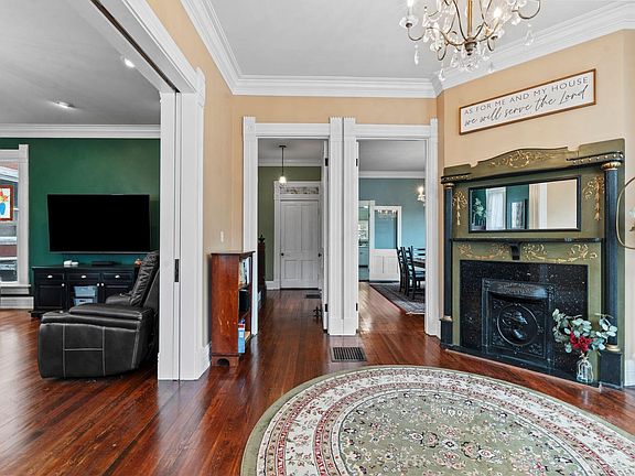 Intricate trimThoughtfully preserved woodworkFront porchTall ceilingsOriginal transoms