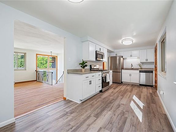 Move right into your beautifully renovated new home! This house is inviting from the moment you open the front door to the cathedral ceiling entry and turn on the contemporary chandelier. The tung oiled oak floors have a subtle matte finish and glow in a golden hue. The open concept kitchen features unique concrete countertops and plenty of natural light in the eat-in dining room. This high design kitchen has brilliant white cabinets black pulls to match the modern black sink and all new stainless appliances - what a dream to any home chef. The three season porch off the kitchen gives a view of a lush back yard while keeping the bugs outside. Each of the three bedrooms are spacious and have large closets, oak flooring and new light fixtures. The bathroom is a calm shade of light blue with white tile accents and just the right size. So much thoughtful renovation has been done on this house - NEW electrical, furnace, new windows and more - all in a great neighborhood close to Ross Park!