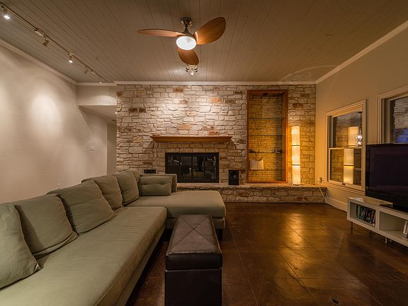 This lovely elegant home is filled with sunshine! Amazing lake view from the living dining, kitchen and master bedroom. Enjoy the HUGE 71 foot screened in porch overlooking the lake. Beautiful dry stacked stonework throughout the home including two limestone fireplaces/walls in the master and living area. Perfect for entertaining this home has a apacious floorplan. Artist studio attached can also be used as gameroom/office. Located on a nice quiet street in Lakeway. Acclaimed LTISD.