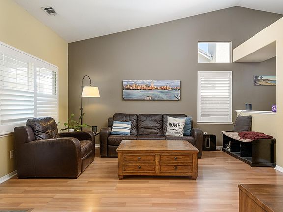 Prime Location in Mountain View Ranch. This bright and airy 3 bed/2 bath home comes with vaulted ceilings, an open concept kitchen, raised planter beds, and a serene shaded sitting area on the front patio. Backing up to open space, the backyard features a weekend warrior's dream outdoor bar/BBQ kitchen with drink fridge, sink, and TV. The community pool has a sun filled deck with a community lawn featuring a picnic table and a sand volleyball court. Safe and well maintained tree lined streets make cruising around this neighborhood a sweet treat.