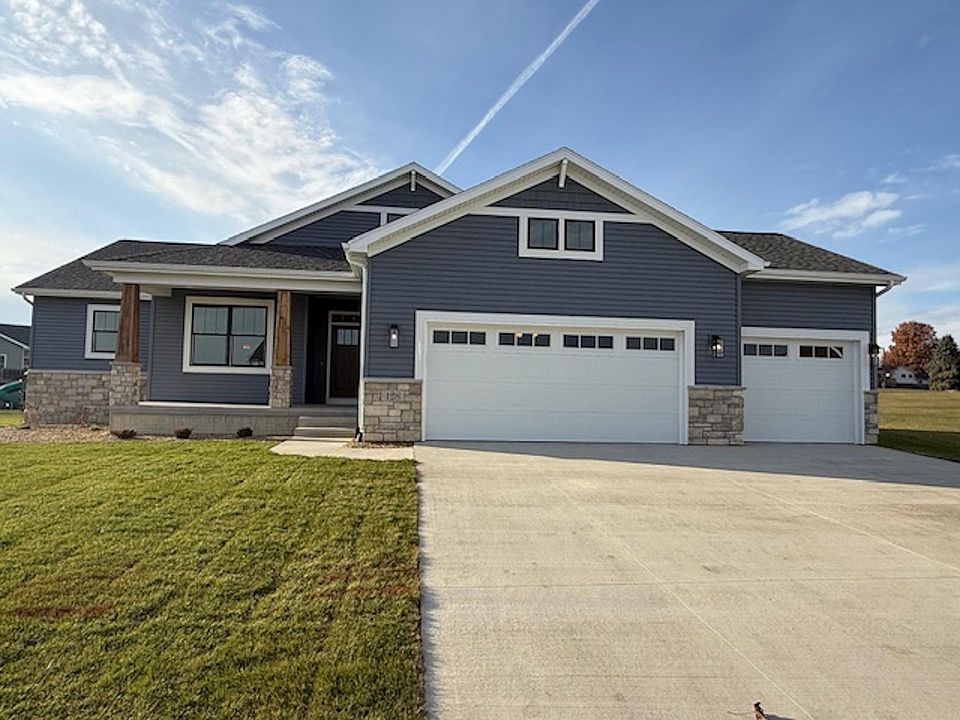 Welcome to this exquisite craftsman ranch-style home that combines timeless design with modern comforts. This splendid residence offers over 2900 square feet of finished living space, perfectly tailored for those seeking both style and functionality. As you step inside, you're greeted by an open-concept layout that seamlessly connects the kitchen, dining, and living areas. The spacious kitchen boasts elegant cabinetry, ample counter space, and quartz countertops, making it a chef's dream. The adjoining dining area is perfect for both casual meals and formal gatherings, while the expansive living room provides a warm and inviting space for relaxation and entertainment. The main floor hosts three generously sized bedrooms, each designed with comfort in mind. Along with the bedrooms; you will also find a dedicated office space on the main level offers the perfect environment for productivity, filled with natural light and privacy. Venture downstairs to the partially finished basement, where you'll find an additional bedroom that can serve as a guest room, home gym, or hobby space. The basement offers endless possibilities for customization, allowing you to create the perfect retreat to suit your needs. Located in a desirable neighborhood, this craftsman ranch-style home is more than just a place to live—it's a place to thrive. Don't miss the opportunity to make this stunning property your own. Schedule a viewing today and experience the perfect blend of classic charm and modern living. Completion date - November 2025. **Photo is of a similar home**