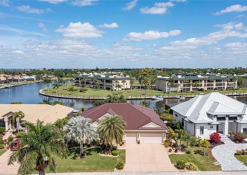 PGI CUSTOM WATERFRONT BEAUTY W/QUICK BOATING ACCESS & **NEW ROOF** (INSTALLED MARCH 2024) (Roof Info at end of description). Custom, 3 bed/2 bath + study, waterfront home in Punta Gorda Isles is located on one of the few streets in PGI w/UNDERGROUND UTILITIES. Reach open water in under 15 minutes from your backyard! Inside, the home features a spacious, open floor plan w/formal living room, formal dining room & separate family room. Architectural details include HIGH CEILINGS throughout, tile floors in kitchen & family room, hardwood floors in living room & dining room, arched transom windows in front, & plantation shutters in bedrooms. The living room has beautiful, engineered hardwood flooring, crown molding & sliding glass doors that open to the lanai. Formal dining room has a tray ceiling & chair rail w/wainscot paneling beneath it. Study/home office is nestled just off the foyer & formal living room. It features a built-in desk w/two workstations & a walk-in closet. Easily converts to a 4th bedroom if desired w/removal of desk. The large, gourmet kitchen features granite counters, raised-panel cabinetry w/stepped upper cabinets, INDUCTION RANGE W/DOUBLE CONVECTION OVEN, kitchen R/O water filtration plus a breakfast bar, center island, closet pantry & walk-in butler's pantry. The adjacent breakfast area has a mitered bay window that overlooks the pool & canal view. The family room has a soaring cathedral ceiling, built-in entertainment center, tall windows & disappearing sliding glass doors that open to the lanai. Laundry room features additional storage cabinets w/built-in pantry plus a small storage closet. The master suite has walk-out access to the lanai, two walk-in closets & a large master bath. The master bath offers dual sinks, walk-in shower, linen closet & private WC. Split bedroom layout boasts two, large guest rooms (one w/walk-in closet) that share an elegant guest bath w/two sinks & a combination tub/shower. Outside, the lanai features an in-ground pool, summer kitchen & plenty of room for outdoor entertaining. Enjoy this outdoor living space that overlooks the canal view. The partially FENCED BACKYARD leads to the extended concrete dock. Dock has two outside pilings plus two posts w/slide moors. Water & electric hook-ups are available dockside. Start enjoying some of the best fishing & boating in SW Florida directly from your backyard. Other amenities include an OVERSIZED 3-CAR GARAGE w/bump out & overhead storage, whole-house HURRICANE PROTECTION w/mix of electric roll-downs, panels & accordion shutters, water softener, in-wall speaker system/intercom & humidistat. Lush, tropical landscaping surrounds the home creating the feel of a PRIVATE OASIS when sitting on your lanai. Property is located on a quiet street yet remains close to historic downtown, Fishermen's Village, PGICA building, library & Ring Around the City walking/biking trail. Start enjoying the active lifestyle Punta Gorda offers including golfing, fishing, tennis, pickleball & more. Punta Gorda also offers a lively art & music scene w/weekend festivals throughout the year. 200 MPH Worthouse Metal Tile Roof System installed by Apple Roofing in March 2024.