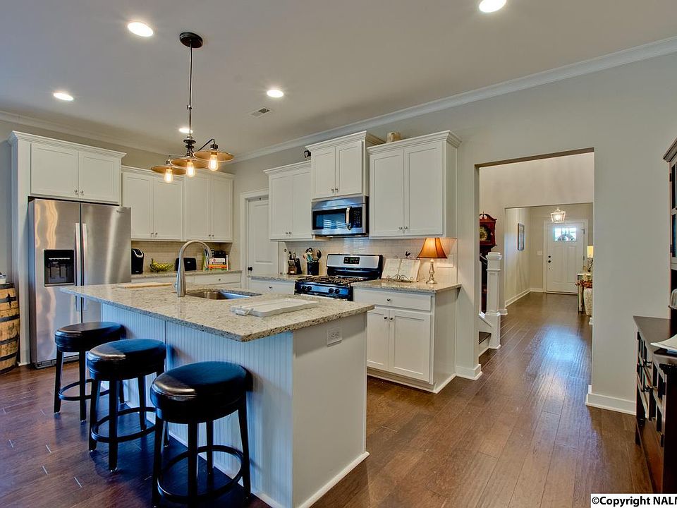 There is no wasted space in this move-in ready, well thought-out, open floor plan home with a main-floor master. There are wood beams in the entryway, continuous hard wood floors (New 2019), and a second bedroom on the main floor with a full bathroom for a guest suite or nursery. The fabulous kitchen has granite countertops, gas range, ample cabinet space, and a huge pantry. It opens to the dining and living rooms, perfect for entertaining. The main-floor master bedroom has two walk-in closets, a master bathroom with two granite-topped vanities, soaking tub, subway tile in the shower, a linen closet, and a private space with a door to the commode. There are two additional bedrooms and a full bathroom on the second level as well as two loft/bonus rooms which can be used as an office, remote learning center, reading nook/library, exercise space, media room, or for gaming. The shaded front porch is great for keeping an eye on the kids in the cul-de-sac and visiting with the neighbors. The property backs up to the Bradford Creek Greenway Nature Preserve. The back porch is a peaceful retreat with a forest view. Listen to the birds and tend to the organic garden and fruit trees. There is a 64sf garden box with 100% organic soil and vegetables, a fig tree, blueberry bushes, and peach trees. The two-car garage is large enough to fit two full-sized pick-up trucks and still has ample room for storage. There are two attics for additional storage, one is accessed through the laundry room on the main floor and the other is on the second floor. The community is small and neighborly, and before Covid, there were neighborhood block parties. The school district is outstanding! (Madison Elementary, Liberty Middle, James Clemons High School) Access to the greenway is excellent for athletes who want to walk/run/bike in nature without worrying about cars or traffic.