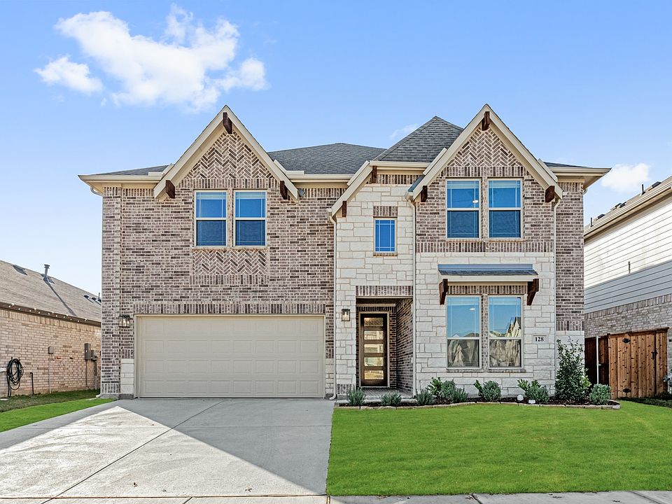 NEW! NEVER LIVED IN. READY NOW! Discover modern living with this open-concept Rose II plan, featuring a Family Room with soaring ceilings and window-lined living spaces. The expansive Game Room, complete with an attached Media Room, and Study offers versatile options. Enjoy the luxurious first-floor Primary Suite and a fantastic backyard oasis with views of green space and a pond. Enhanced finishes elevate this home, including Wood-look Tile floors in common areas, a striking Stone Fireplace reaching the ceiling with a gas starter, and Level 5 Quartz throughout. The Deluxe Kitchen is the centerpiece, boasting Shaker cabinets, elegant Quartz countertops, pendant lights, built-in stainless steel appliances, and a Farmhouse sink. Upstairs, find 3 bedrooms, 2 sharing a Jack and Jill bath. Additional upgrades include a Fully Bricked Front Porch, an 8' Front Door, gutters, blinds, gas stub for grilling, and a spacious mud laundry room. Every detail is thoughtfully considered - visit our model today!