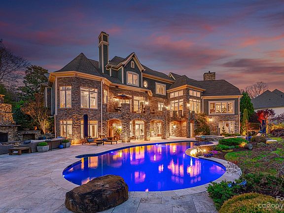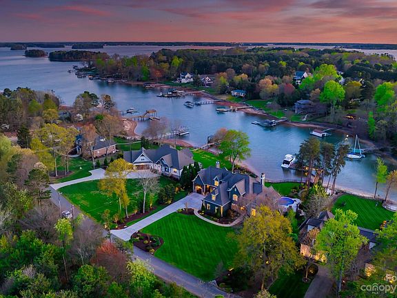 Freshly remodeled sophisticated waterfront home w/walls of floor to ceiling windows located just outside The Point. No HOA. Pier w/covered boat slip, 10,000 lb lift, can accommodate 2nd boat up to 45 ft, dredged 15 ft. Large open floor plan on main w/updated kitchen also has wet bar, family room, laundry, drop zone, living room, family & formal dining & 2 powder rooms. 4+ car garage. Separate staircase to study & office/flex. Luxurious main level Owner's suite w/access to balcony, sitting & lighted trey ceiling. 3 BR up w/direct access to bathrooms + bonus/bunk room. Lake level entertainment guest/flex w/full bath, media room, 2nd flex room, bar, recreation room w/FP, billiards, PR, game & exercise room. Large workshop w/sink, cabinets. Lush outdoor space w/woodland garden, 45 ft long pool w/infinity edge & Spa, expansive travertine decking, outdoor fireplace & fenced yard. Double gates open to staircase for easy water access. Private beach. Control 4 system, hot water on demand.